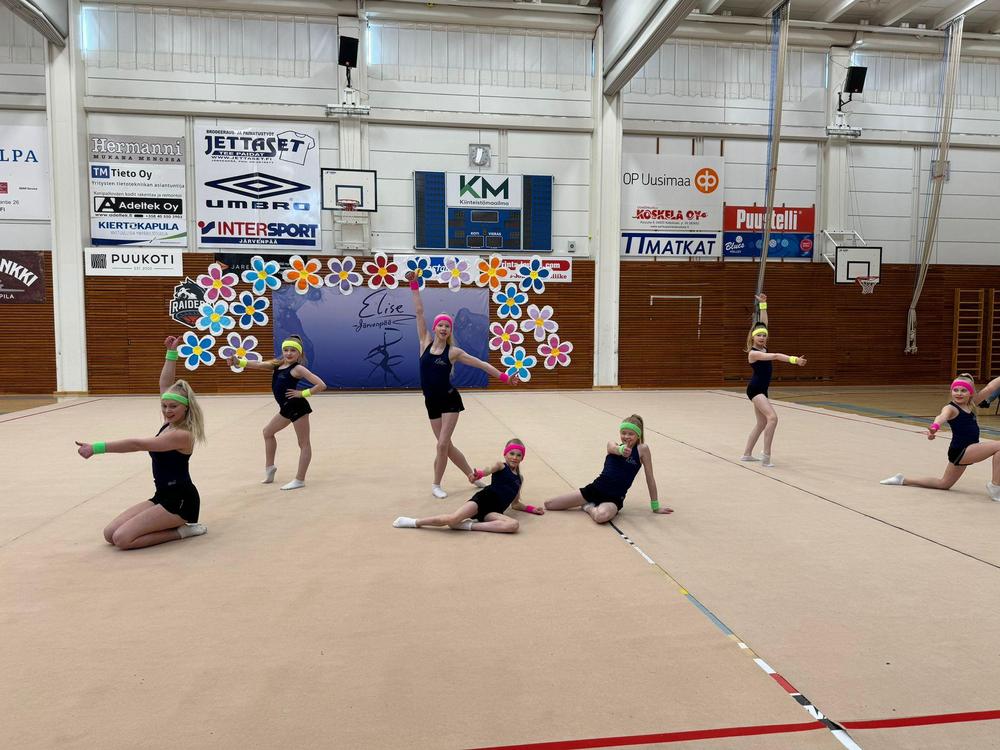 Helatorstaina 9.5.2024 juhlittiin kevätkauden päätöstä Elise Järvenpään perinteisessä kevätnäytöksessä discon merkeissä. Upeita näytösohjelmiaan esittivät kaikki seuramme voimisteluryhmät pienimmistä perhe- ja ninjagym ryhmistä alkeis- ja harrasteryhmiin sekä harrastekilpa- ja valmennusryhmiin. Iloinen disco teema tempaisin loistavasti myös yleisön mukaan raikuvin aploodein.