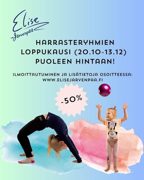 Kaikkiin harrasteryhmiin, joissa on vielä tilaa, voi ilmoittautua loppukaudeksi mukaan. Alennus normaalista syyskauden hinnasta on -50%.