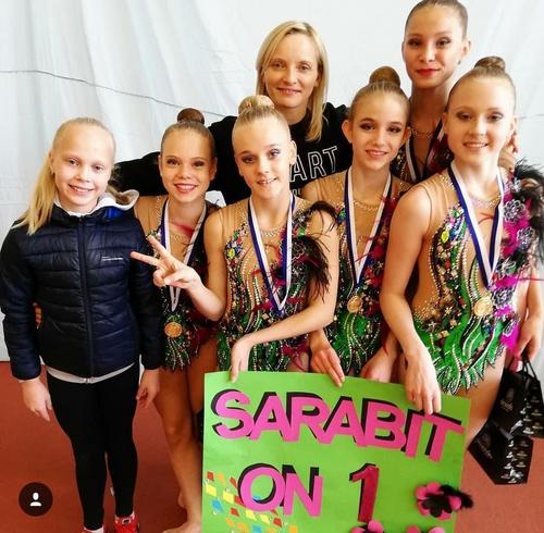 Sarabit keräsivät ensimmäisellä näytöllä upeat pisteet 14.000 ja toiseen näyttöön lähdettiin kärkisijalta. Toisessa näytössä ei onnistuttu parantamaan suoritusta ja pisteet jäivät hieman alle ensimmäisen näytön. Molempiin näyttöihin mahtui vielä virheitä, ja niitä lähdetään siistimään jälleen seuraavaan kilpailuun. Upeat yhteispisteet 27.800 toivat Sarabeille jälleen kultaiset mitalit kaulaan kannustavan yleisön edessä. Hopealle voimisteli sisarseuramme Elise – Vantaan nuoret yhteispistein 24.400 sekä pronssille SVS:n nuoret yhteispistein 17.900.