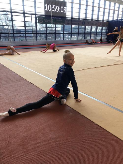 Elise – Järvenpääläisistä mukana oli yksi voimistelija. Peppi Hein kilpaili 10 -vuotiaiden sarjassa naru- ja pallo-ohjelmillaan. Pepin ohjelmiin mahtui vielä isoja virheitä, mutta muuten voimistelu oli jo siistimpää ja kehittymistä on selkeästi tapahtunut. Peppi sijoittui sarjansa 13. Kilpailu toi Pepille hyvää kisakokemusta, tästä on hyvä jatkaa eteenpäin.