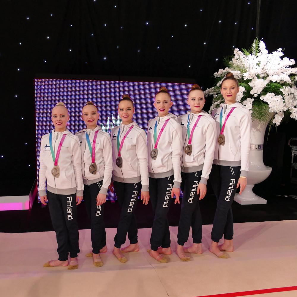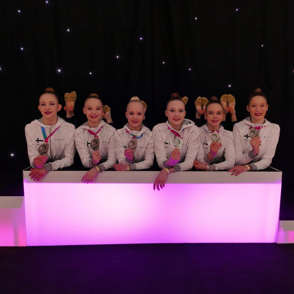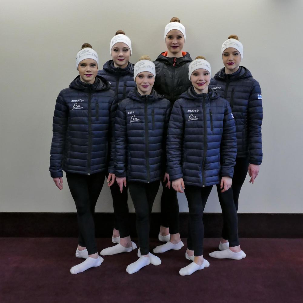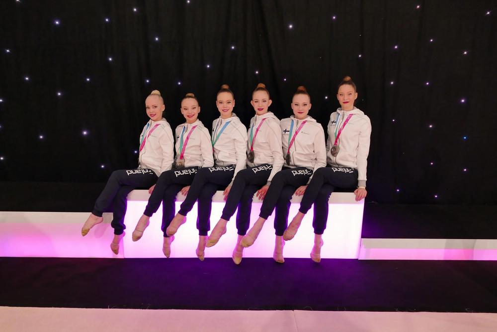 Sarabit joukkueessa voimistelevat Cecilia Skyttä, Emmi Valkama, Minttu Hänninen, Nella Aaltonen, Marina Senjuk ja Nea Civil. Joukkuetta valmentaa Natalia Burmak.
