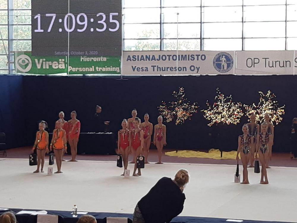 3.10.2020 Turun kupittaalla järjestettiin rytmisen voimistelun duojen/triojen kilpailu sekä välinekilpailut.