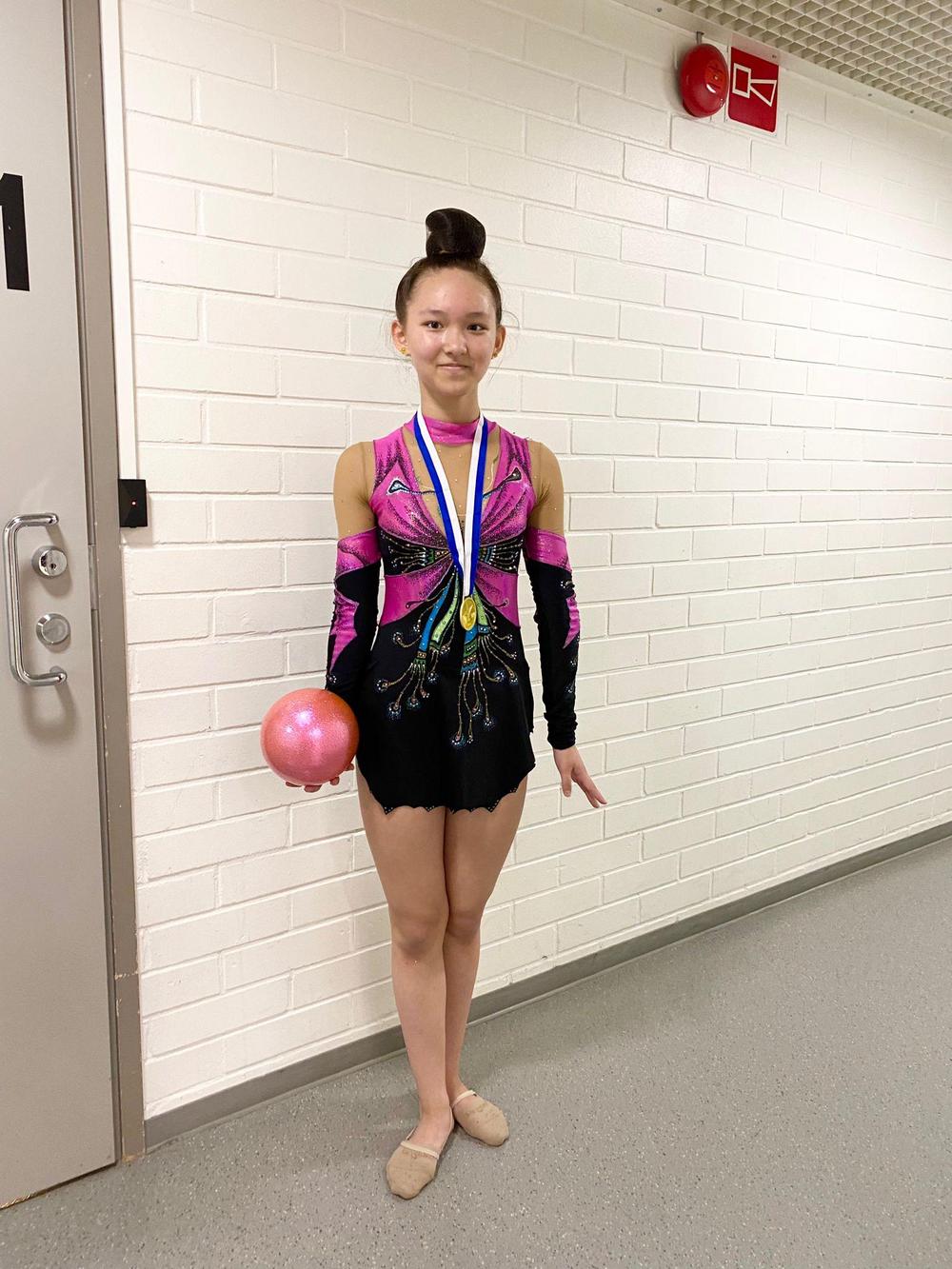 Päivän viimeisinä Elise Järvenpään voimistelijoina nuorten 1-otteluun osallistuivat Timonit ryhmästä Venny Hovi, Aurora Hauta-Aho sekä Unna Engström. Venny on kartottanut kilpailukokemusta jo puoli vuotta mutta Auroralle ja Unnalle kilpailut olivat uran ensimmäiset. Vaikka ohjelmat eivät vielä sujuneet täysin virheittä, selviytyivät sekä Venny että ensikertalaiset Aurora ja Unna ohjelmistaan hienosti jännityksestä huolimatta. Vennylle pallo ohjelmasta pisteet 5.400, Auroralle pallo ohjelmasta pisteet 3.450 ja Unnalle pallo ohjelmasta pisteet 6.500. Hienoa työtä tytöt!