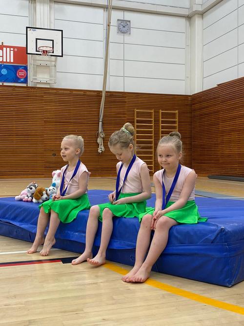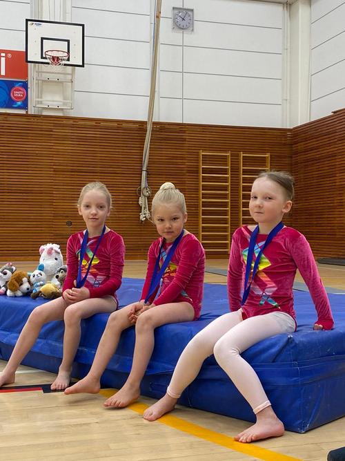 Kannustava ja lämminhenkinen tapahtuma onnistui hienosti ja rohkeille voimistelijoille muistoksi itsensä ylittämisestä mitalit!
